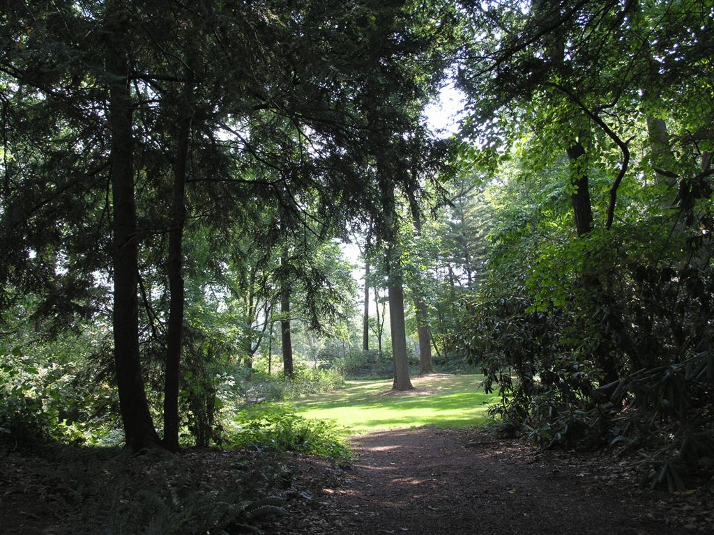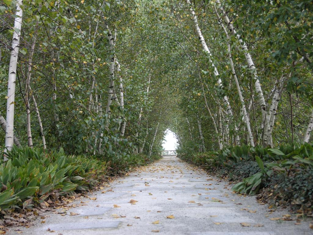 Looking through Birch Allee Vista toward Tea Houses